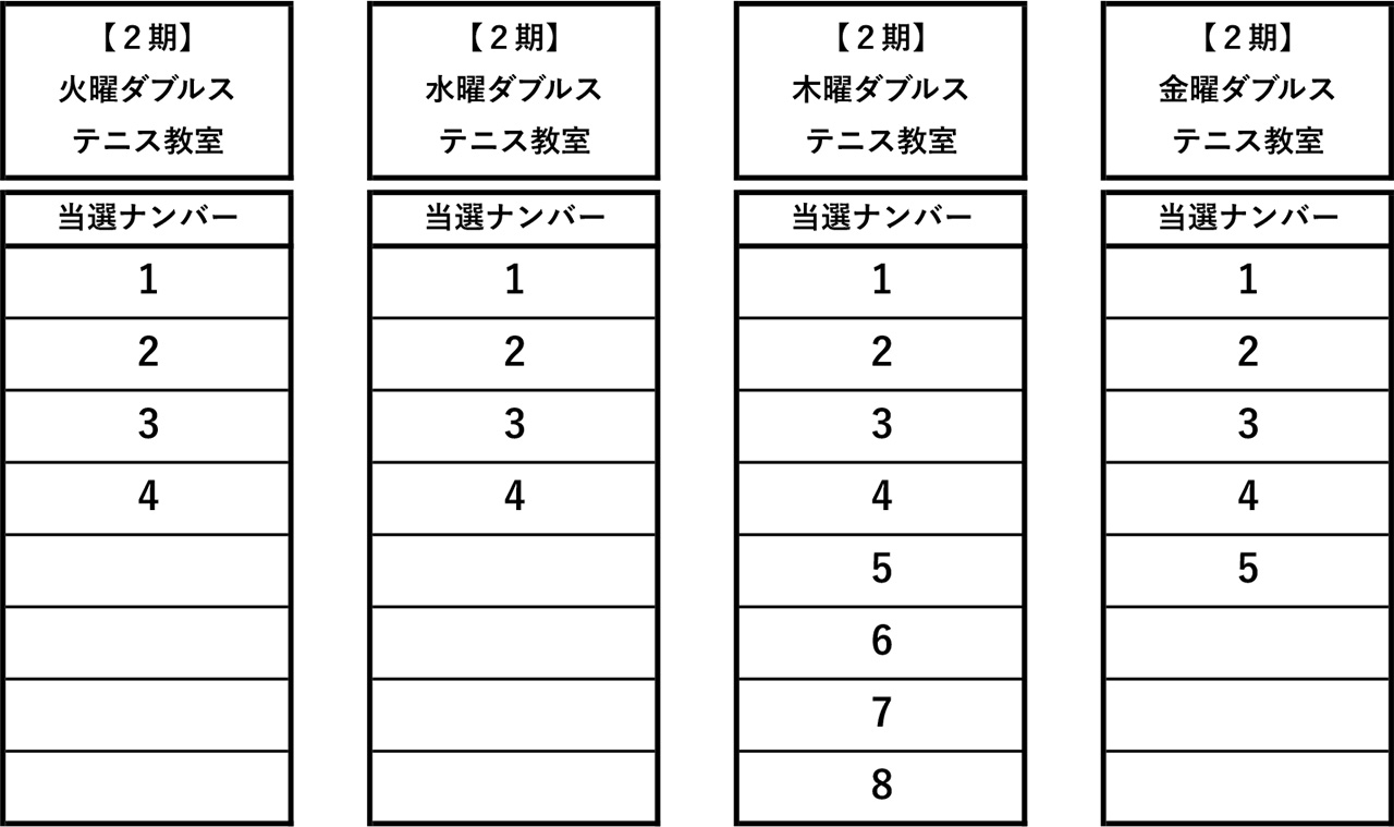 News2025年度山形県総合運動公園スポーツ教室 2期ダブルステニス教室抽選結果について