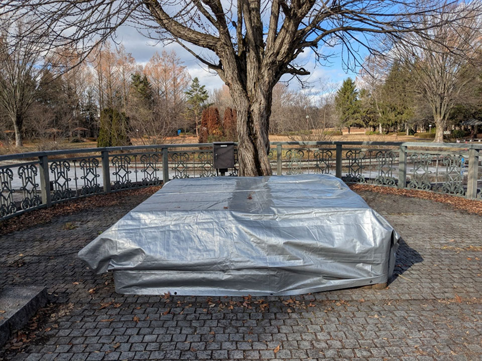 また、木製ベンチ等につきましても養生が必要となるため、同期間はご利用いただけません。